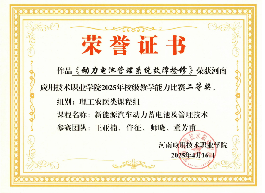 本次比赛全校共有15个参赛队伍,竞争异常激烈。beat365英国官网网站团队以《动力电池管理系统故障检修》为参赛题目,紧密贴合新能源汽车行业发展趋势,将前沿技术与教学实践深度融合。在备赛过程中,团队成员们日夜奋战,查阅大量资料,精心设计教学方案,反复打磨每一个教学环节。他们深入企业一线调研,了解实际工作中的故障案例和检修需求,确保教学内容的实用性和针对性。