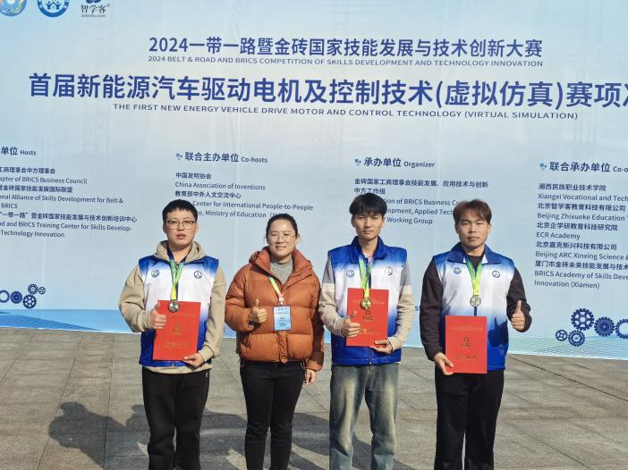 12月1日,2024一带一路暨金砖国家技能发展与技术创新大赛首届新能源汽车驱动电机及控制技术(虚拟仿真)赛项决赛落下帷幕,beat365英国官网网站的师生团队凭借扎实的专业技能和出色的赛场表现,在全国119支参赛队伍中脱颖而出,成功斩获一等奖一项,二等奖两项的优异成绩。