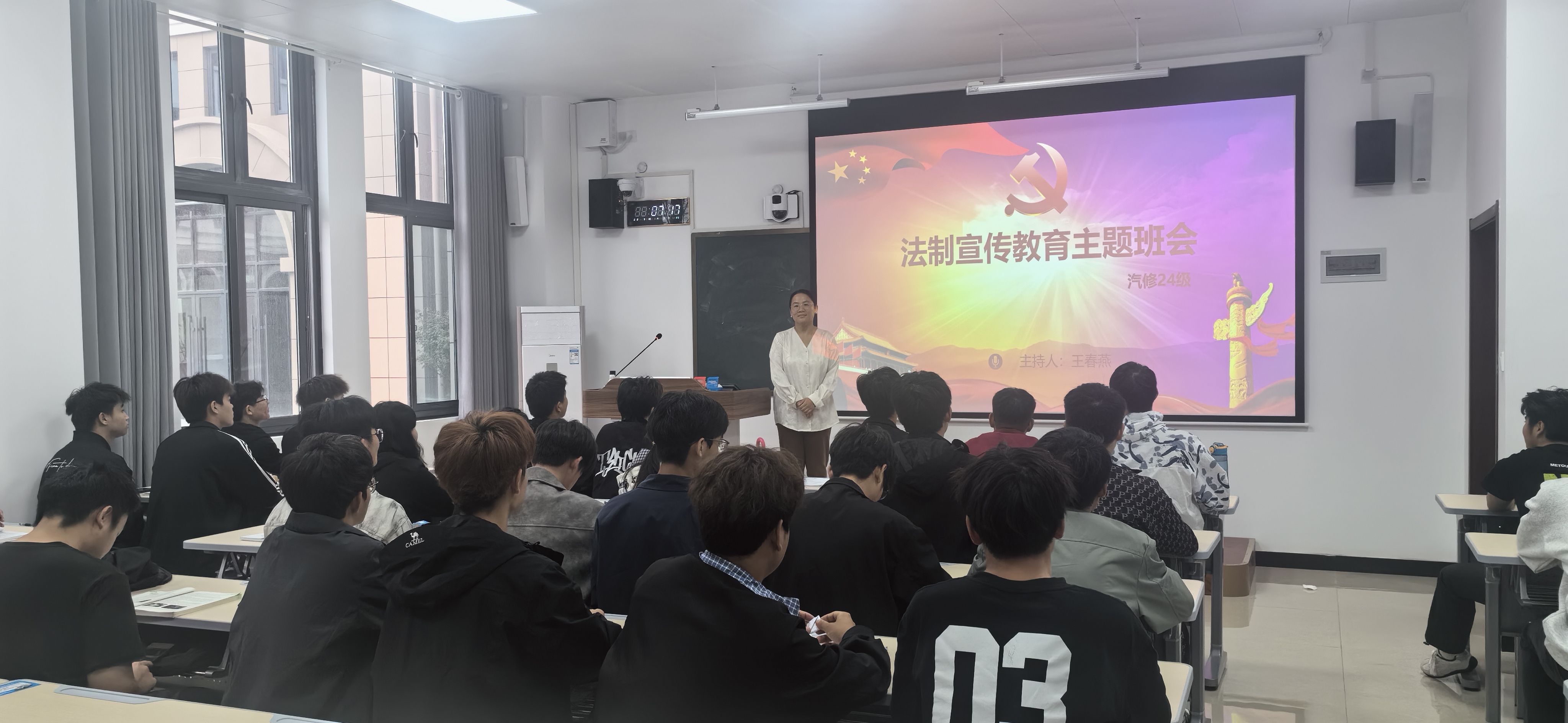 学院各班以 “身边的法律故事” 为切入点,结合大学生常见的校园贷、知识产权侵权、交通安全等案例,用通俗易懂的语言讲解《民法典》《治安管理处罚法》中与学生生活密切相关的条款。班会还设置了 “法治知识问答” 环节,围绕 “遇到校园欺凌该如何维权”“实习期间劳动权益受侵害怎么办” 等问题。