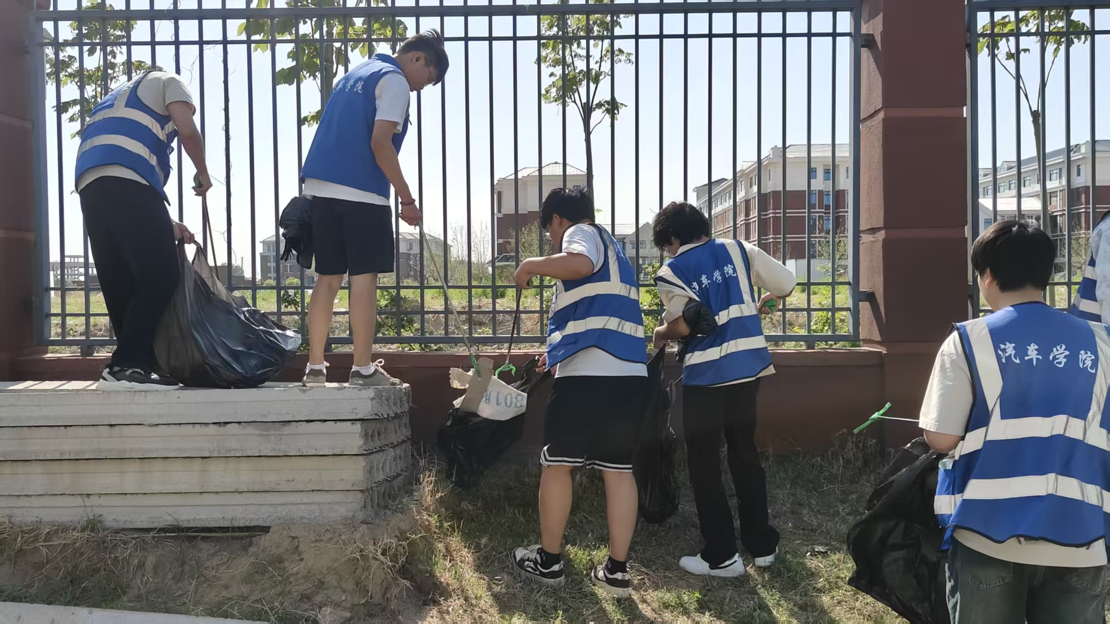 当天,beat365英国官网网站师生在学校外侧围墙手持各式劳动工具,展开大“清洗”。从下午三点到五点,志愿者们分工协作,打扫所划分的区域,把里面所有的塑料袋,橡胶制品,纸屑等一一处理。刚开始,志愿者还在抱怨天气的炎热,但随着活动的不断深入,大家越干越起劲,正所谓众人拾柴火焰高经过两个小时的劳动,清理垃圾达7个大垃圾袋。外侧围墙环境焕然一新。
